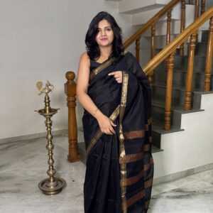 Maheshwari sarees are a type of handwoven saree that originated in Maheshwar, a town in the Khargone district of Madhya Pradesh, India. These sarees are known for their unique blend of silk and cotton fabric, intricate designs, and distinctive borders. Maheshwari sarees are favored for their light and breathable fabric, making them comfortable to wear, especially in warm climates or during summer seasons. The body of the saree is usually made of cotton, which makes it lightweight and comfortable, while the borders and pallu (loose end of the saree) are woven with silk, adding a touch of elegance.